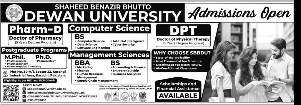 Admissions for computer science programs have been opened by DEWAN UNIVERSITY Admissions Open – (Karachi). Originally published in Daily Jang on 18 January 2026.