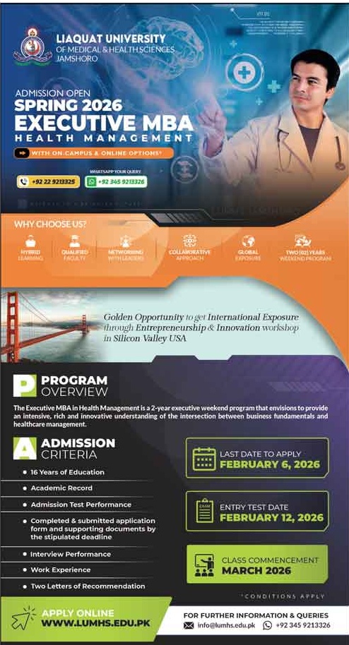 Admissions have been opened by LIAQUAT UNIVERSITY – (Jamshoro).