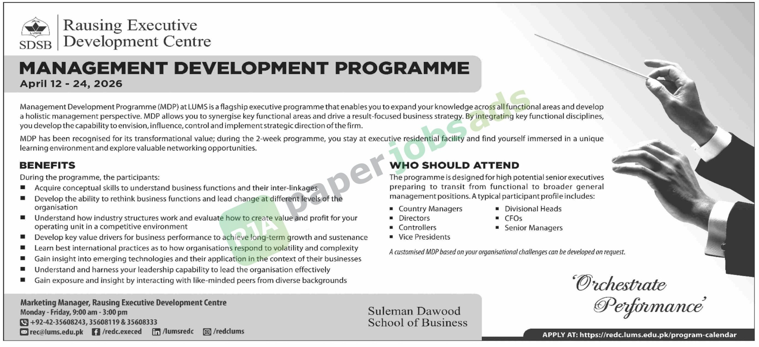 APPLY AT: https://redc.lums.edu.pk/program-calendar