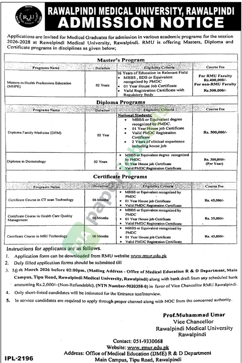 RAWALPINDI MEDICAL UNIVERSITY, RAWALPINDI