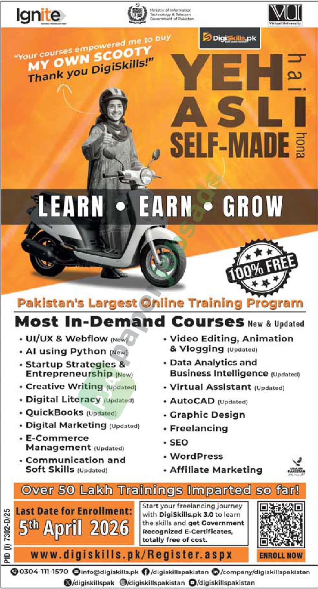 Admissions for certificate programs have been opened by DigiSkills. Originally published in Daily Jang on 8 March 2026.