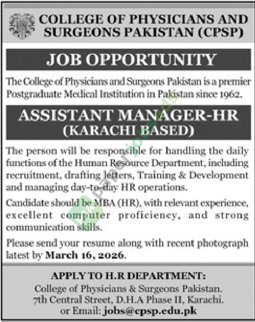 More Jobs from College of Physicians and Surgeons Pakistan (CPSP)