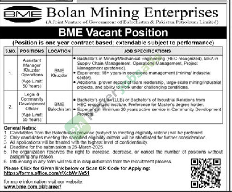 • For more information, visit the official website of Bolan Mining Enterprises - BME or contact the organization directly.
