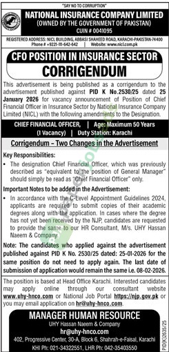 Job Vacancy – Cheift Financial Officer – NATIONAL INSURANCE COMPANY LIMITED – Karachi