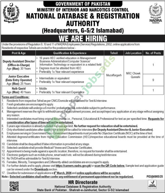 Muzaffargarh Published: 22 Feb 2026 Deadline: 09 Mar 2026