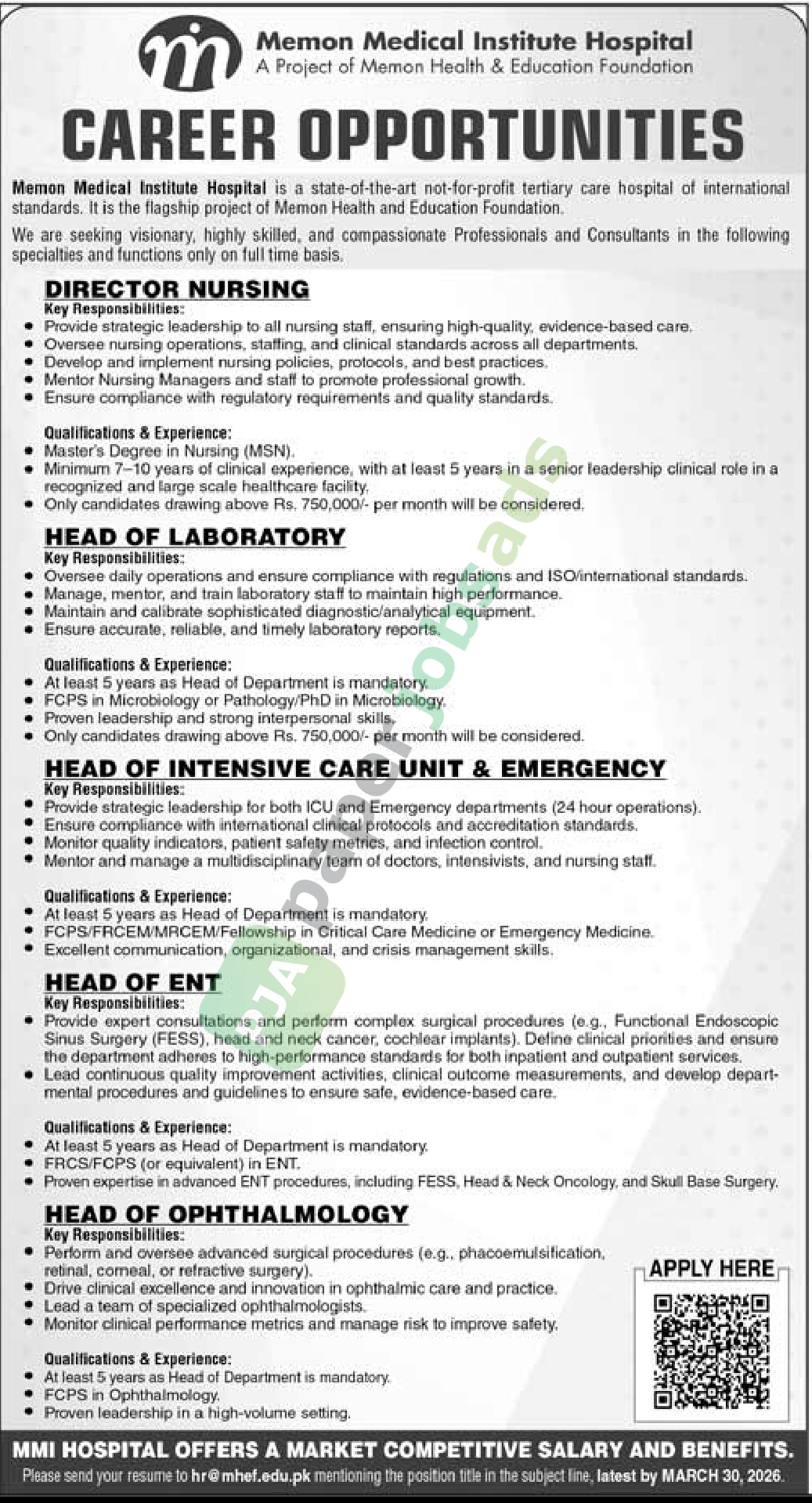 Karachi Published: 15 Mar 2026 Deadline: 30 Mar 2026