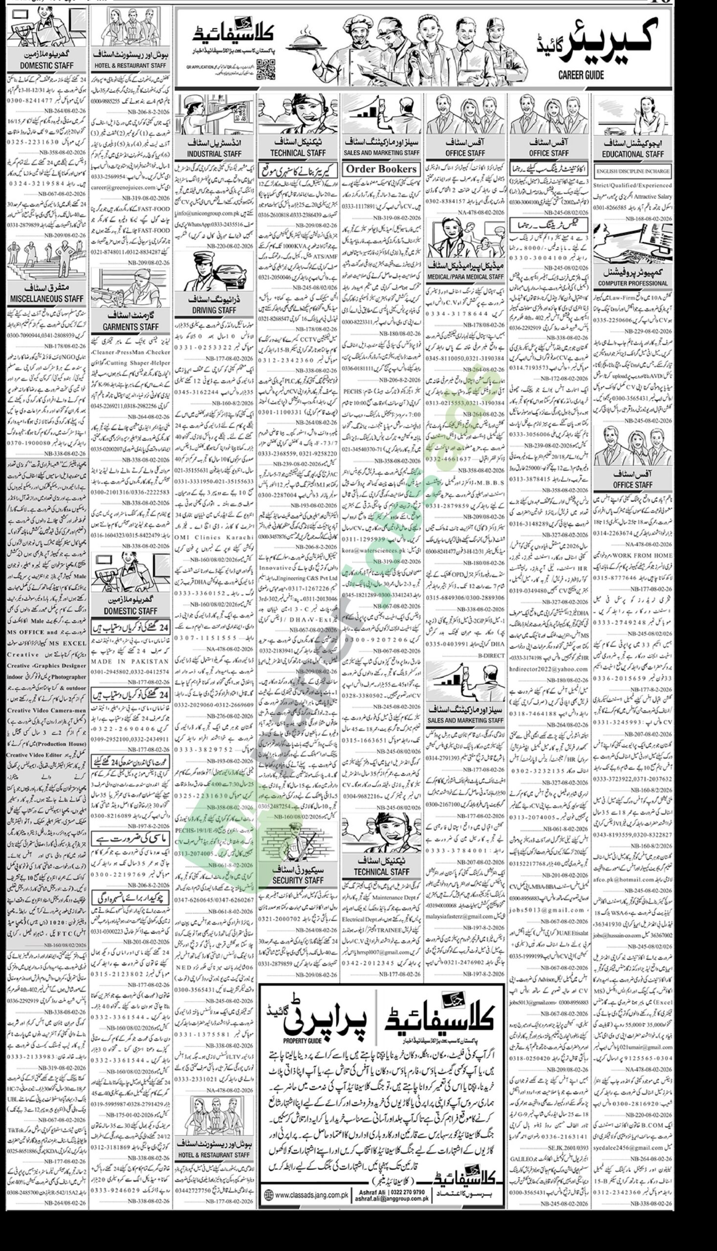 ماسٹرز میل اسٹاف کی ضرورت ہے رابطہ کریں ضرورت ہے جو با صلاحیت ہو، اردو اور انگلش خرید نا، بیچنا یا اس کی تعمیر کروانا چاہتے ہیں، تو جنگ کلاسیفائیڈ آپ کی خدمت میں حاضر ہے۔