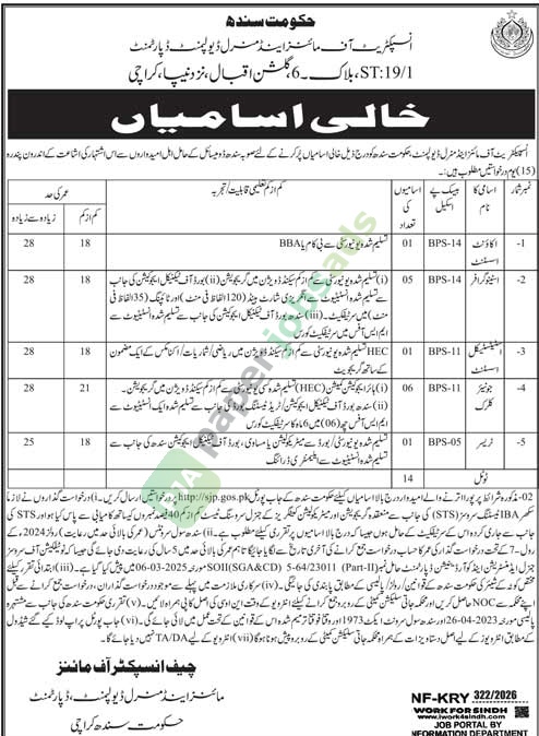 Job Vacancy - Accounts Assistant / Stenographer / Statistical Assistant / Junior Clerk / Tracer - Sindh - Mines & Mineral Development Department