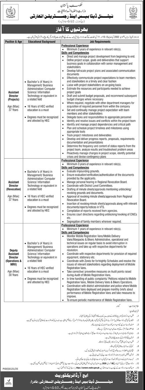 Job Vacancy – Assistant Director (Projects) – NADRA - Original Advertisement