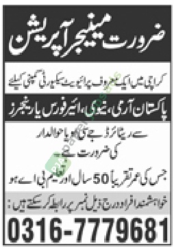 A contract government sector job vacancy for the position of Manager has been announced in Karachi. Originally published in Daily Jang on 1 February 2026.