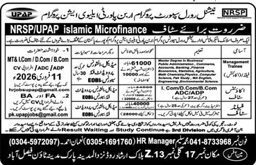 Job Vacancy – Management Trainee – NRSP/UPAP islamic Microfinance