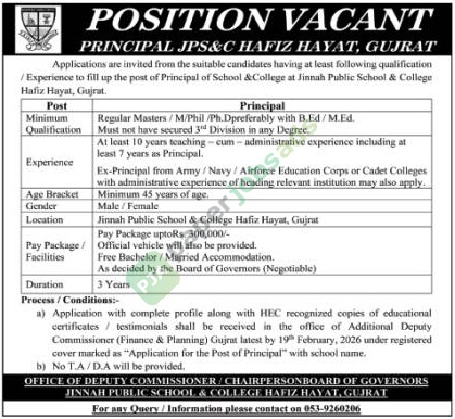 A contract private sector job vacancy for the position of Principal has been announced in Gujrat. Originally published in The Nation on 5 February 2026.