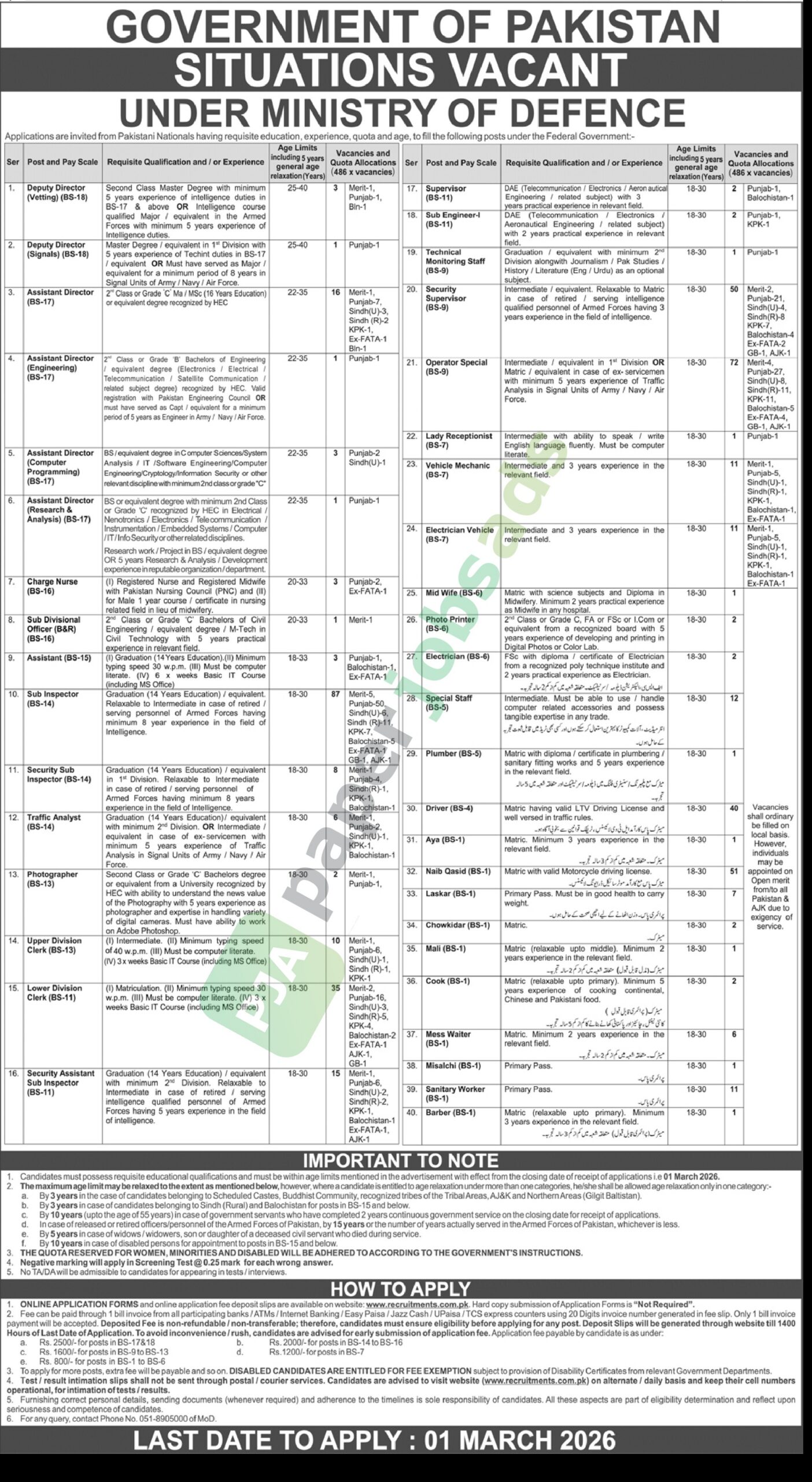 Job Vacancy -Situations Vacant in Ministry of Defence