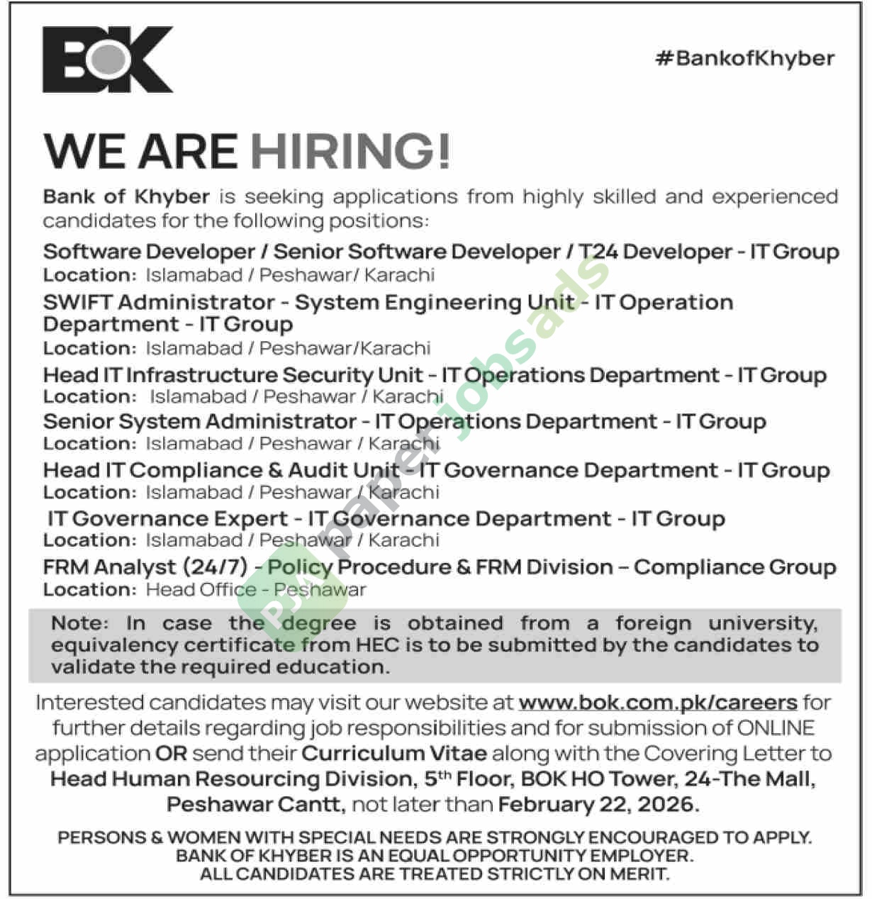 Bank of Khyber is seeking applications from highly skilled and experienced