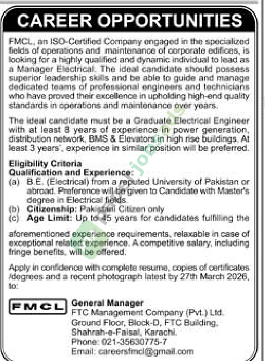 Karachi Published: 15 Mar 2026 Deadline: 27 Mar 2026