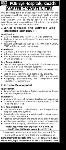 Manager – POB Eye Hospitals (Karachi) - Original Advertisement