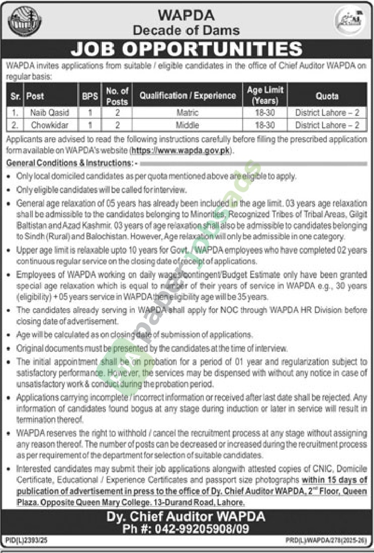 More Jobs from WAPDA