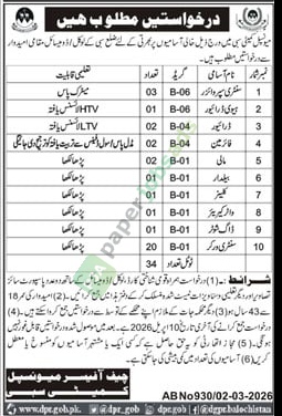 A contract government sector job vacancy for the position of Fireman has been announced in Sibbi. Originally published in Daily Jang on 3 March 2026.