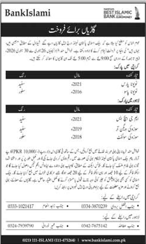 A private tender notice has been issued by BankIslami, Karachi. The bid submission deadline is 30 January 2026. Originally published in Daily Jang on 25 January 2026.