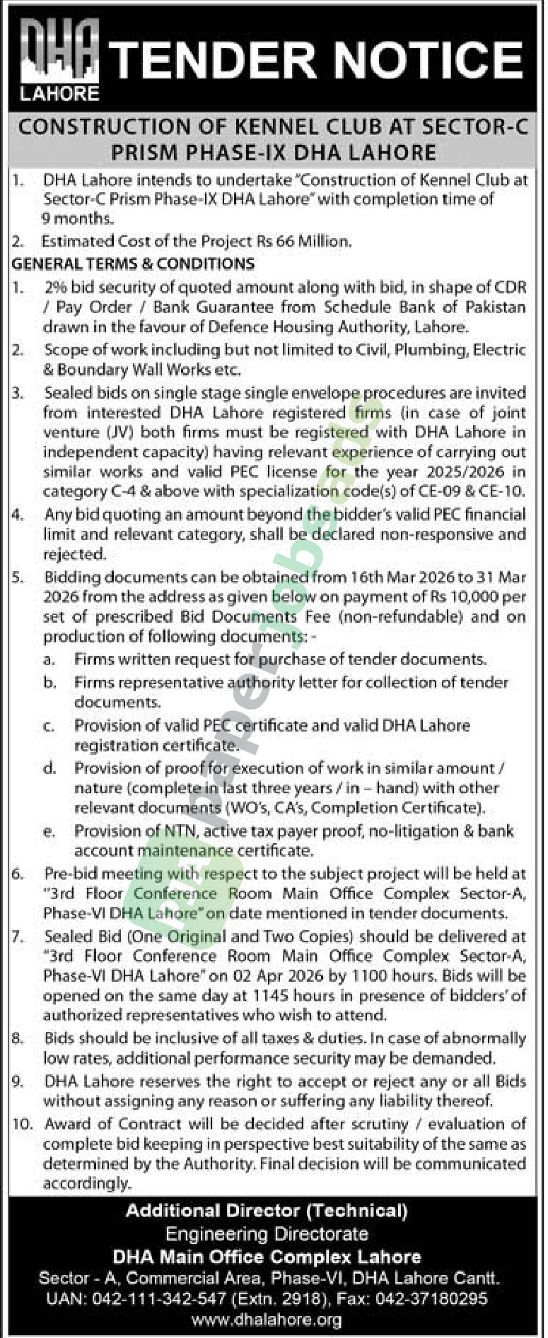More Tenders in Lahore