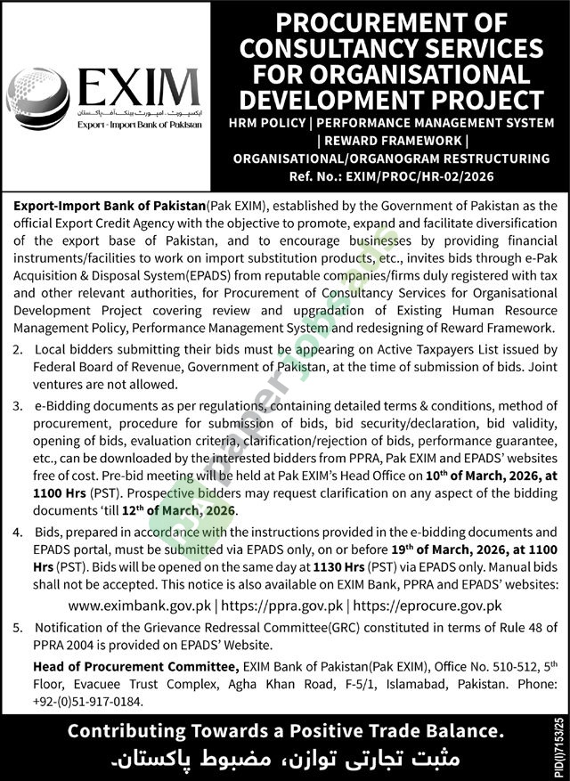 www.eximbank.gov.pk | https://ppra.gov.pk | https://eprocure.gov.pk