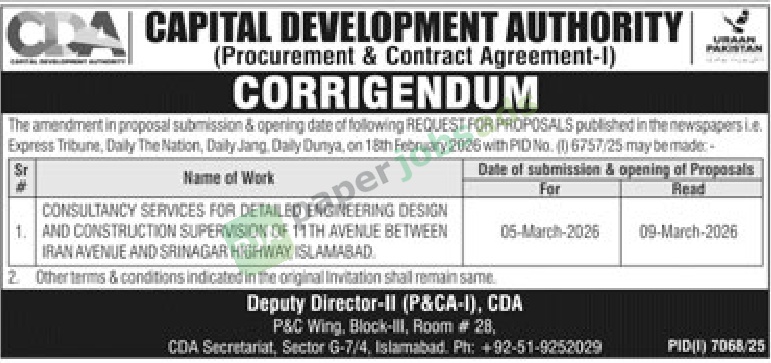 More Tenders from CDA