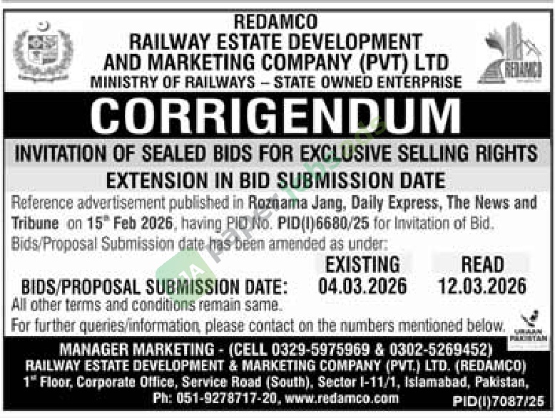 More Tenders from REDAMCO