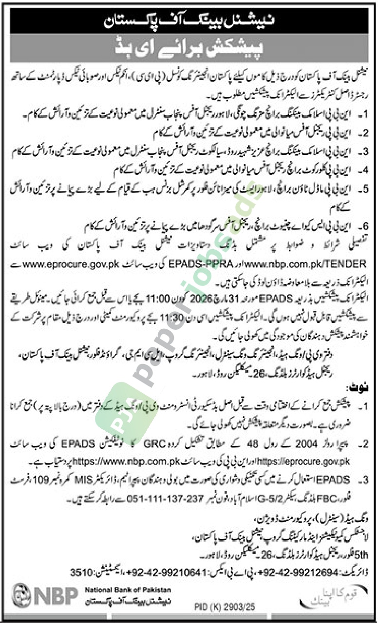 More Tenders from NATIONAL BANK OF PAKISTAN