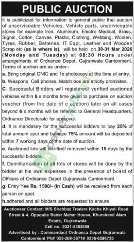 Advertised by: Commandant Ordnanca Depot Gujranwala