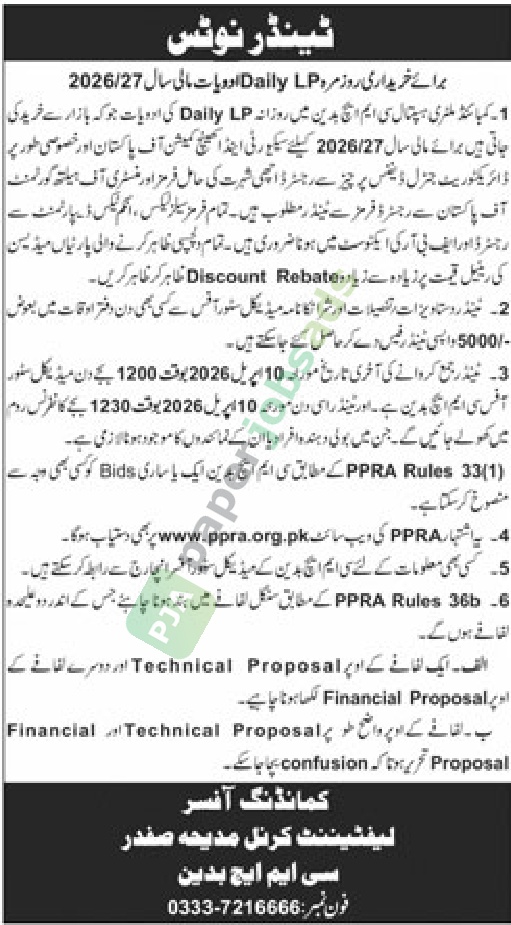 1. The office of CMES (Navy) Compak at PNS Karsaz invites sealed tend...