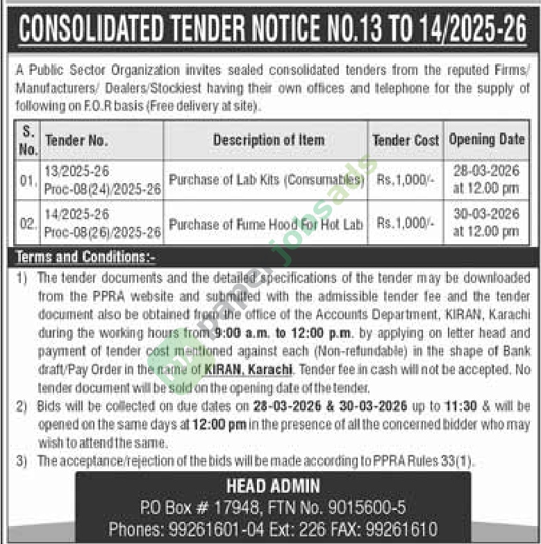 More Tenders in Karachi