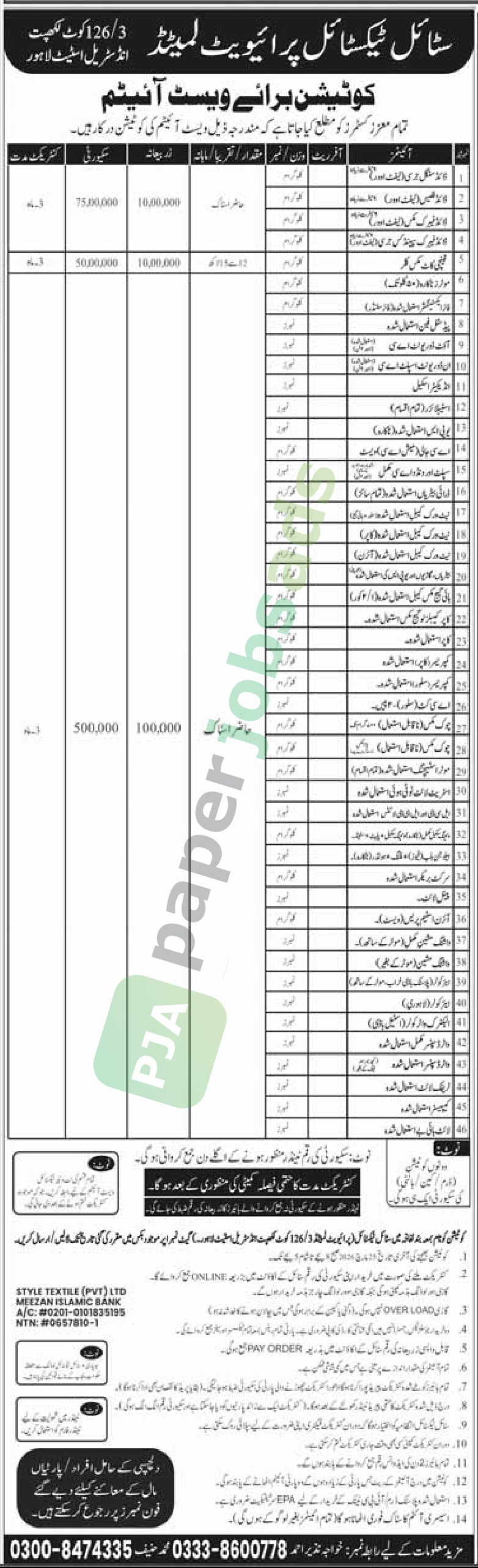 More Tenders in Lahore
