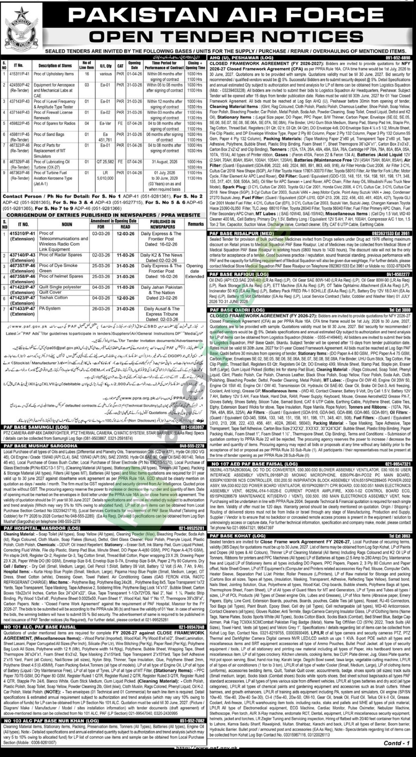 next issuance of PAF Tender notices (As Required). For further detail, please contact at 021-99525281