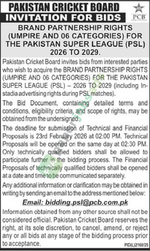 More Tenders from PAKISTAN CRICKET BOARD