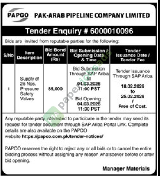 More Tenders from PARCO PAK-ARAB REFINERY LIMITED