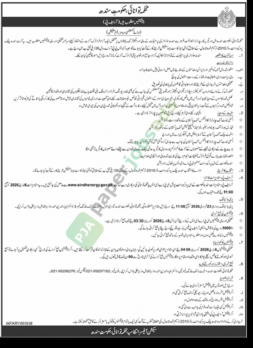 وانائی کی سرکاری ویب سائٹ www.sindhenergy.gov.pk