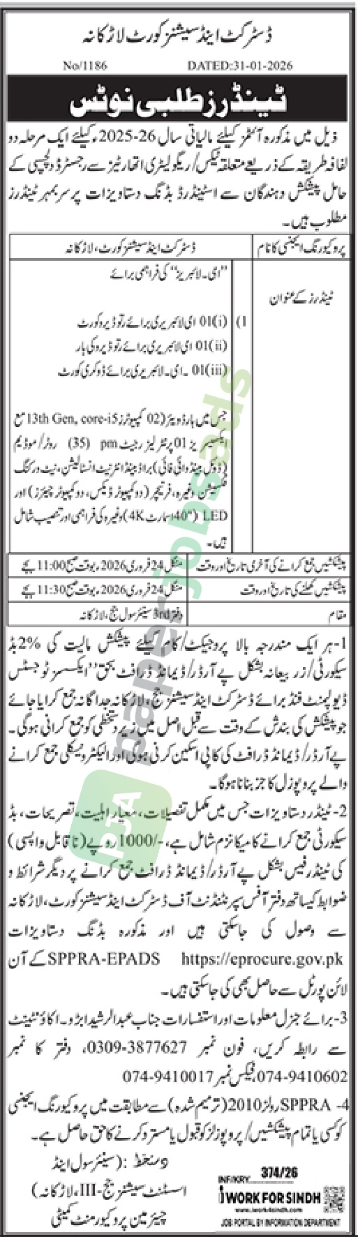 Tender Notice – District and Sessions Court – Sindh