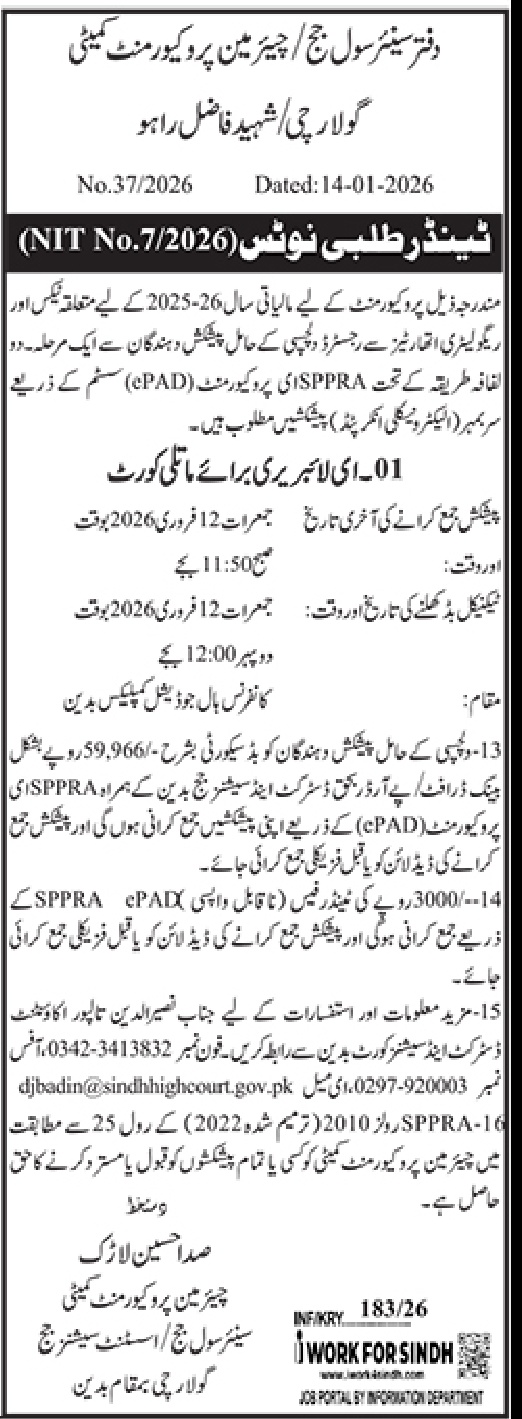 Office of the Senior Civil Judge - Chairman Procurement Committee