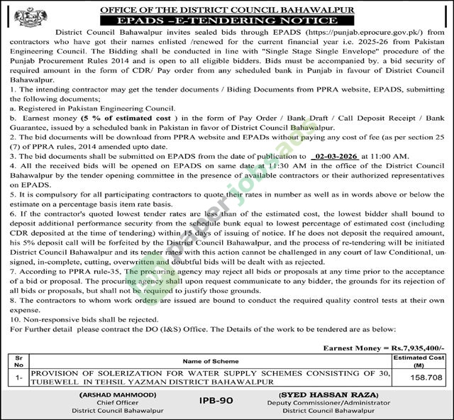 District Council Rajanpur intends to invit...