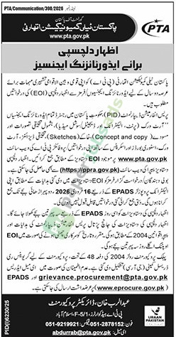 Tender Notice – PTA Communication/308/2020 – Advertising