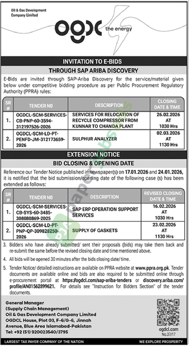 More Tenders from OGDC