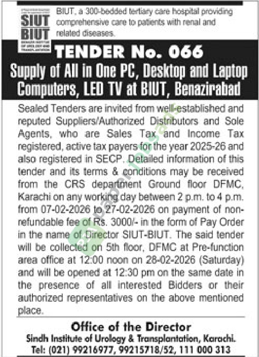 More Tenders from SIUT